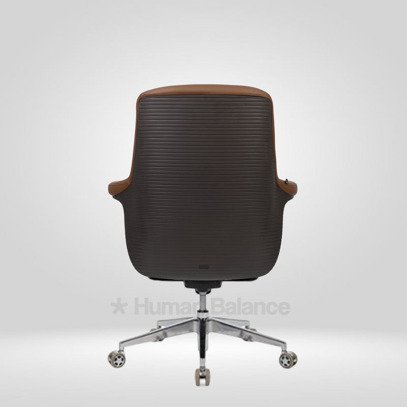 The Baronial midback chair draws its inspiration from the Italian neo modern office design. Such kind of a design is known for its sleek silhouettes, restrained elegance and emphasis on ergonomic luxury. It depicts a unified silhouette with its curved arm line and tapered backrest, commonly seen in modern Italian office seating to convey amiability. The chair is upholstered in eco leather that offers the look and soft feel of premium leather while providing higher abrasion resistance, easier maintenance and reduced environmental impact. It combines straightforward Italian design logic with excellently engineered commercial grade ergonomics. This chair suits contemporary minimalistic interior decor.