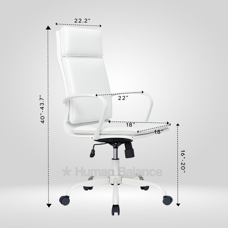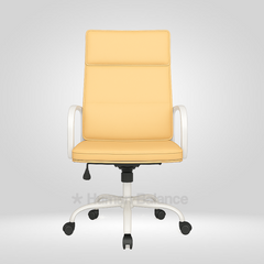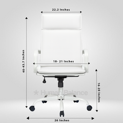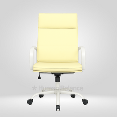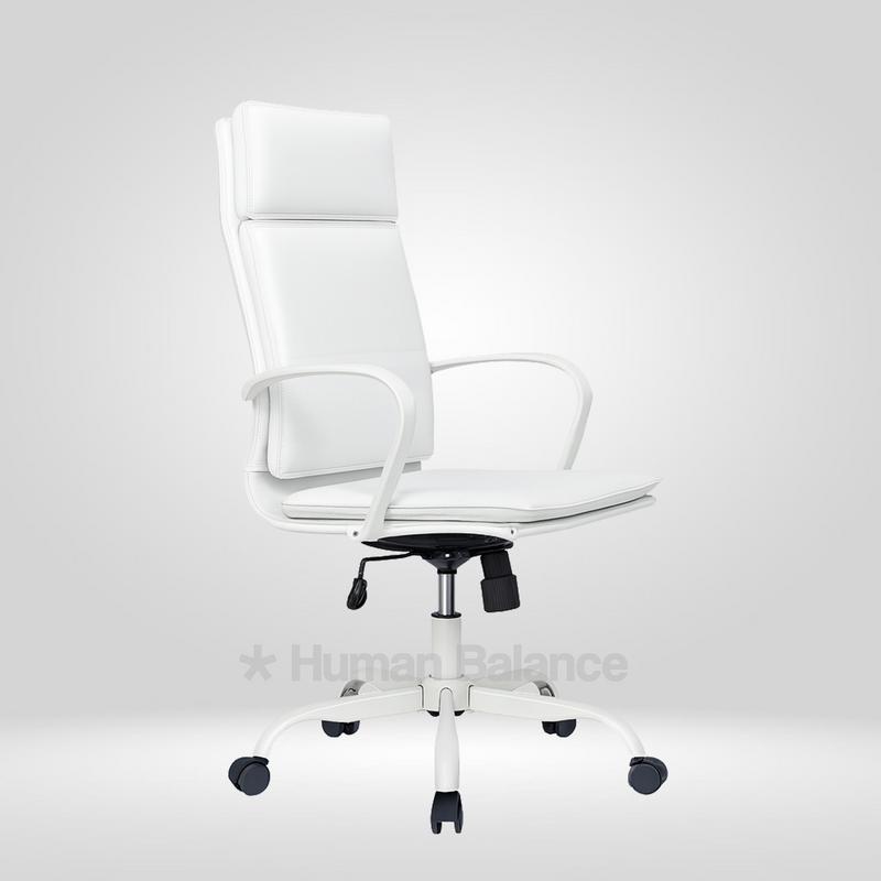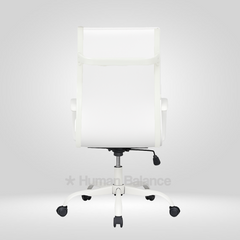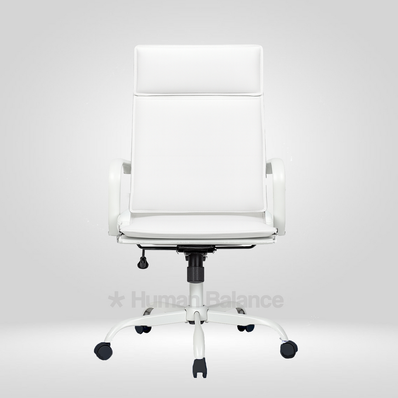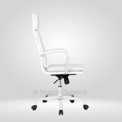 The Bianco double cushion highback chair embodies modern elegance and executive comfort. The design looks refined and professional because of its clean lines, horizontal details and graceful white frame. It gives the perfect amount of ergonomic support for a relaxed posture. Its contemporary aesthetics and timeless simplicity exude grace with iconic sophistication.
