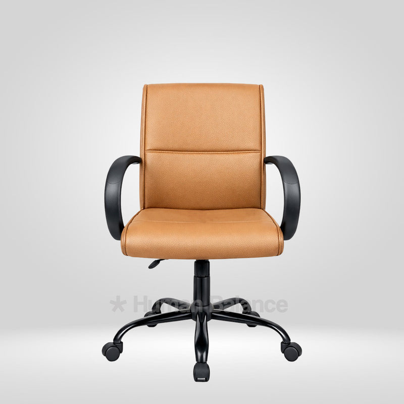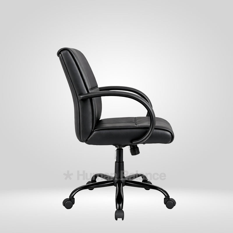 The Bryant midback chair has a pronounced visual stance. The vertical emphasis of it's form gives the chair an inviting appearance which makes the sitter feel valued. It's defined sections bring a clear sense of order which allows the seated person to feel well supported. The form expresses quiet composure without appearing imposing. The chair encourages a relaxed as well as an attentive presence making it a natural fit for urban industrial style interiors.