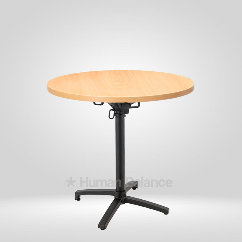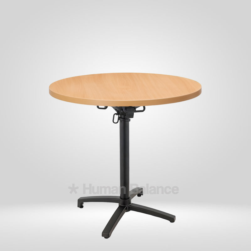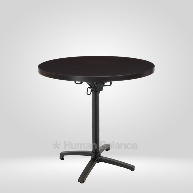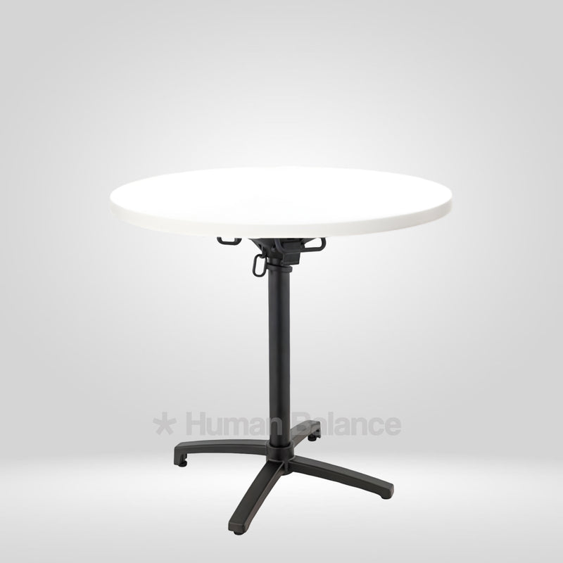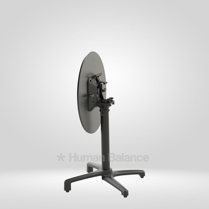 The folding mechanism allows the tabletop to tilt vertically for quick storage ensuring secure locking when in use and effortless release when folding.