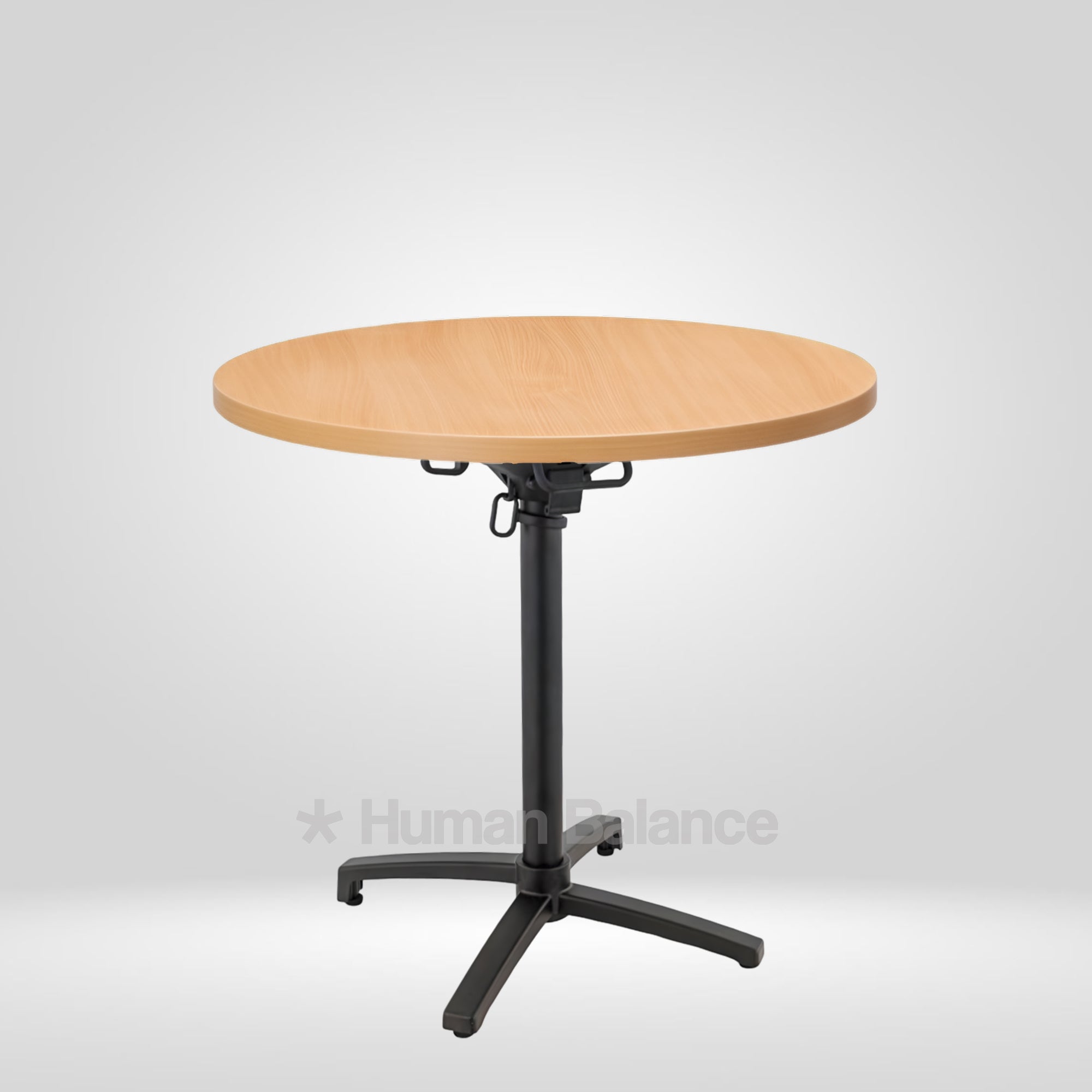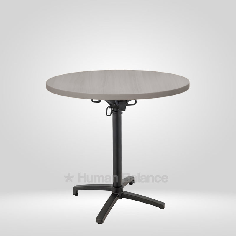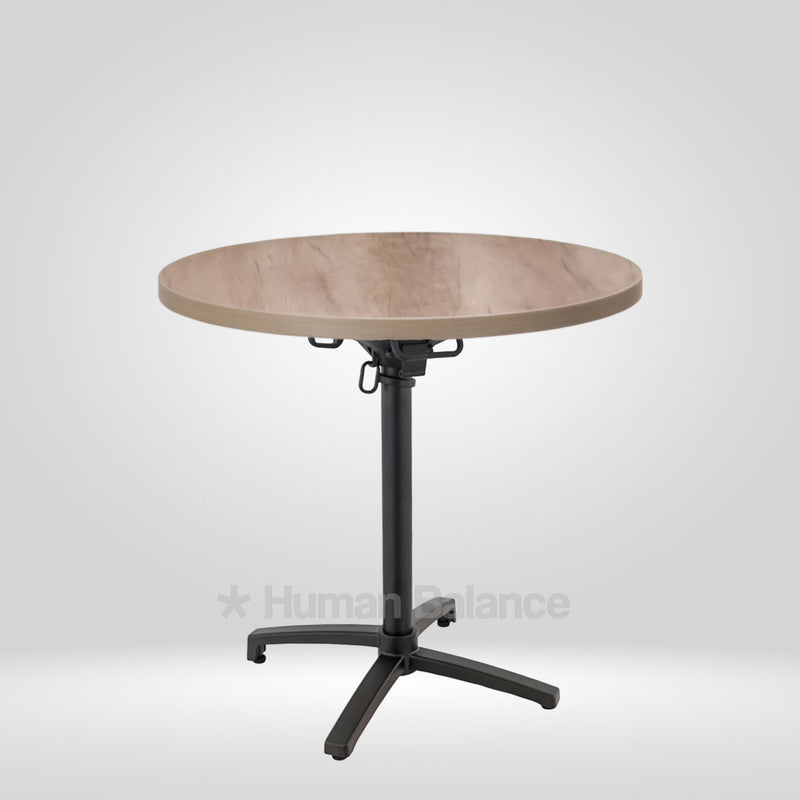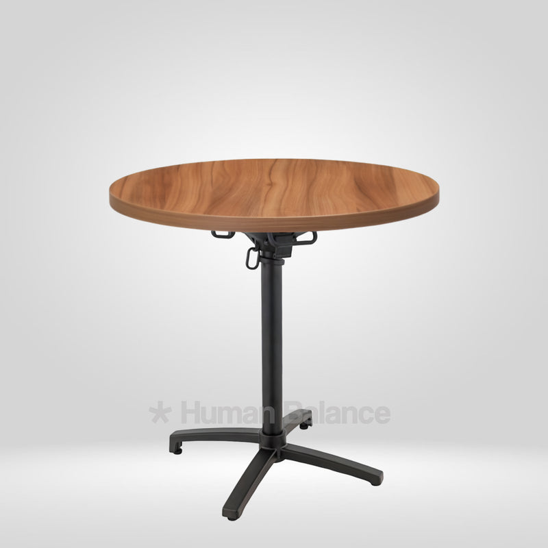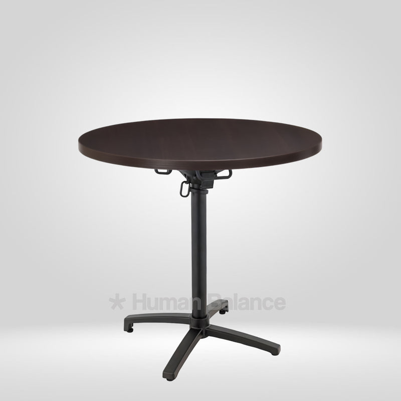 The folding mechanism allows the tabletop to tilt vertically for quick storage ensuring secure locking when in use and effortless release when folding.