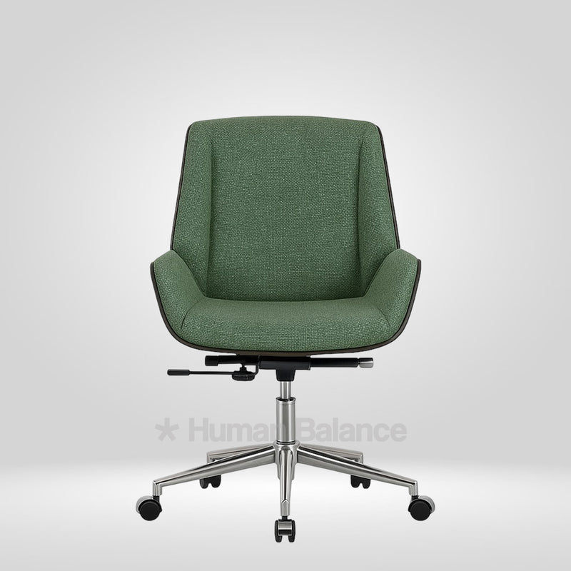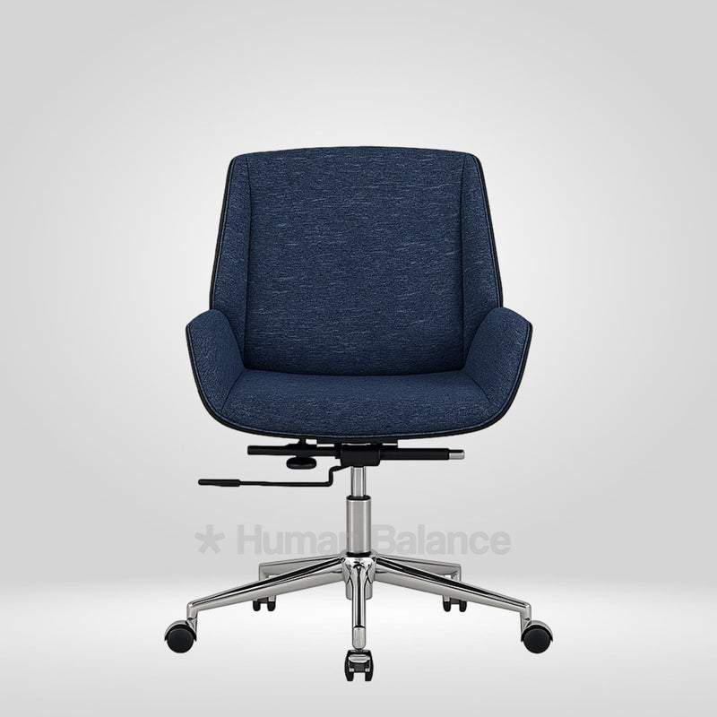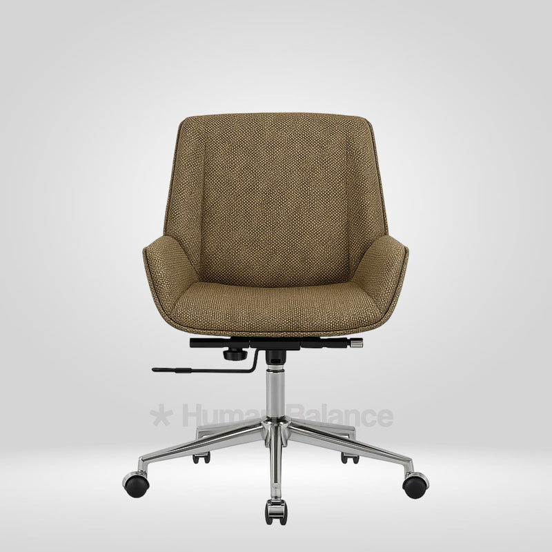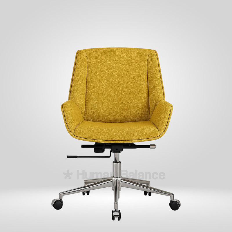 The Flibo midback chair boasts an elegant tapered silhouette that is luxuriously upholstered in fabric. This smart addition improves airflow and decreases heat buildup boosting it's breathability. It depicts an aesthetic allure with its crisp and tapered silhouette adding to its visual sophistication.