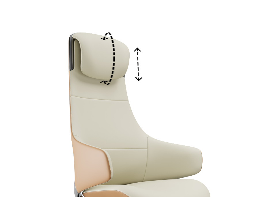 The headrest glides up and down smoothly adapting to different user heights and postures.