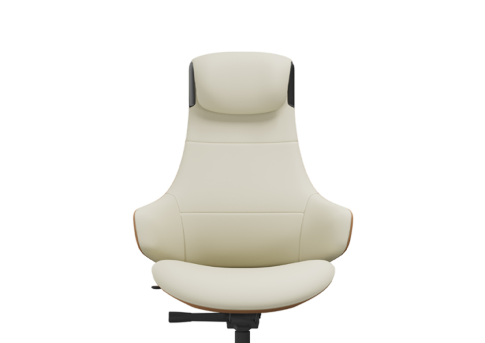 The Flyer high back chair is the artistic embodiment of grace and ergonomics in a refined fluid sculpture. It is designed to provide tailored support with contoured arms that flow seamlessly into the backrest set at a precise angle to cradle the body. The upholstery offers comfort that improves over time as genuine leather softens with use. Its wooden finish panelling adds an immensely refined quality to the silhouette and a fine balance between warmth and the modernity of materials. It is a statement piece that combines art with functional poise establishing an inviting presence.