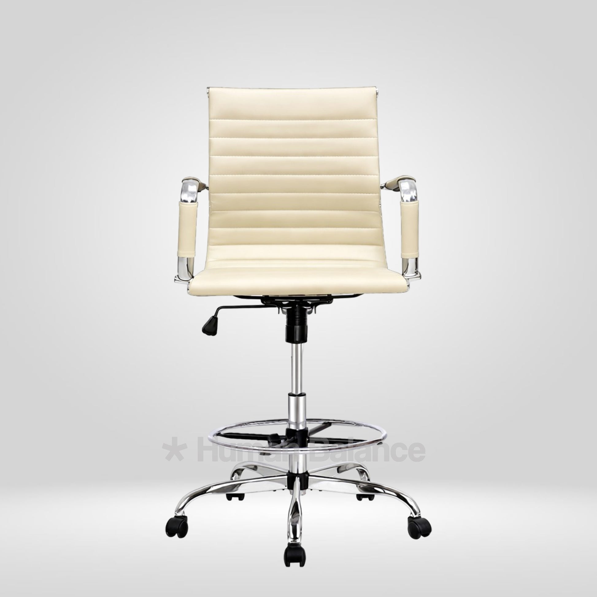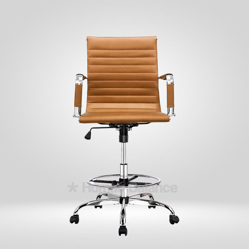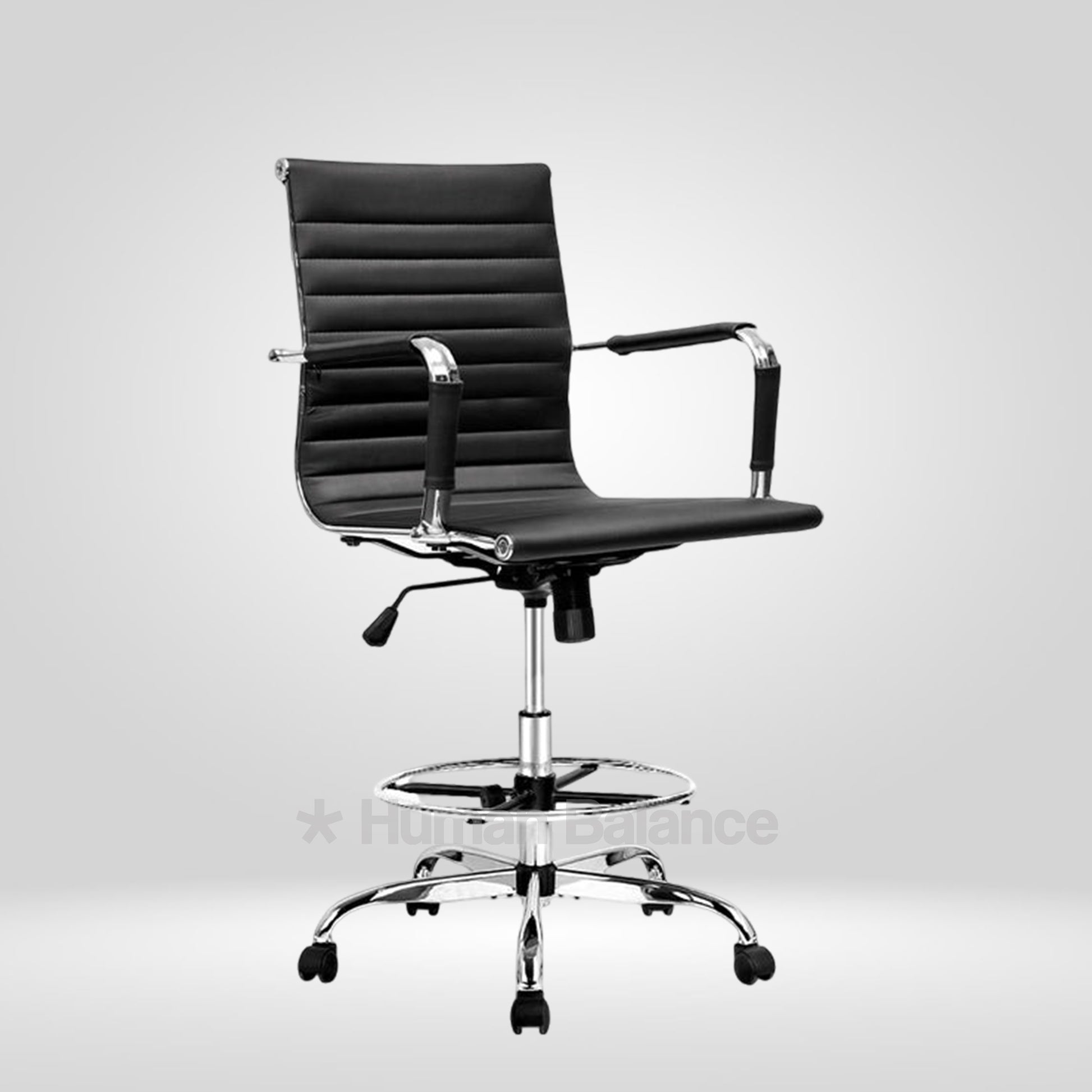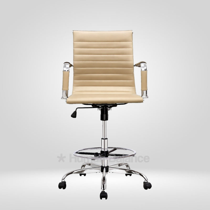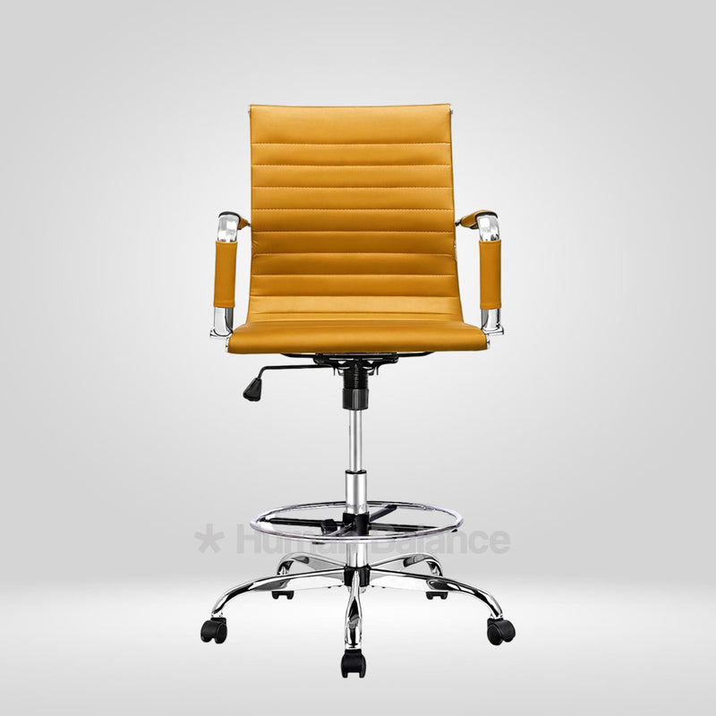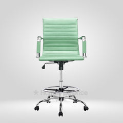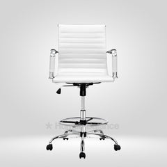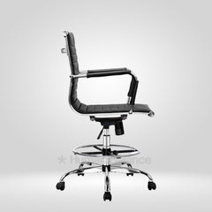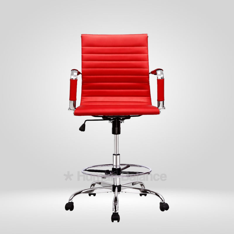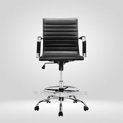 The Garman single cushion lab chair makes a definitive statement of modern elegance designed for sophisticated lab environments. Its sleek frame is distinguished by precise horizontal segmented stitching which creates a refined visual expression without being overtly plush. The foot ring gives the feet a place to rest which helps the user to sit in a better posture. This design has a german swiss influence making it ideal for contemporary cosmopolitan style laboratories.