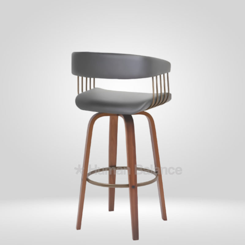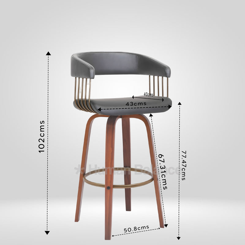 This Haustra bar stool exudes mid century sophistication mixed with modern flair. With its elegantly curved backrest and openframe construction it draws seamlessly together structure and understated pizzazz. The leatherette seat goes perfectly against the warm wooden legs and the vertical metal spindles down the back provide an artdeco hint of sophistication enhancing its looks with a note of aged luxury. Where heritage crosses path with vogue, this barstool is confidently chic.