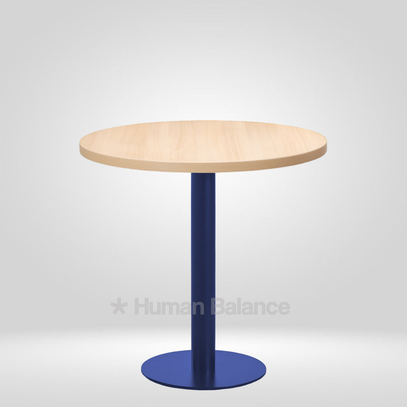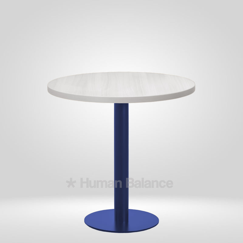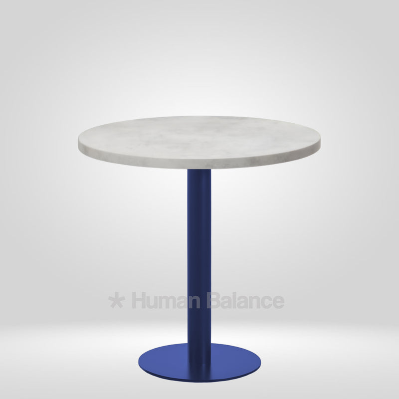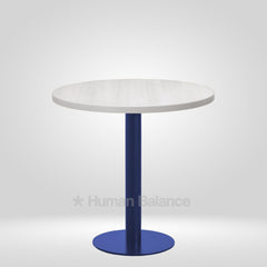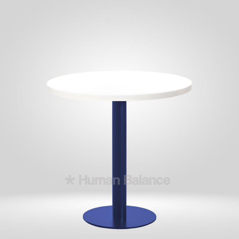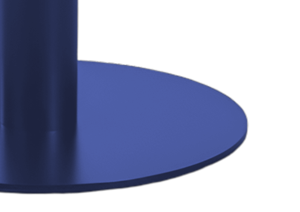 The Kivra cafe table embodies a cool minimalistic design that showcases clean composure. The round top is anchored on a trendy blue base with a compact footprint that is suited to both intimate and high traffic environments. This blue hue imbues a crisp modern character in the room perfectly suiting traditional, pop or graphic interior styles. Such a design brings quiet character into any space.