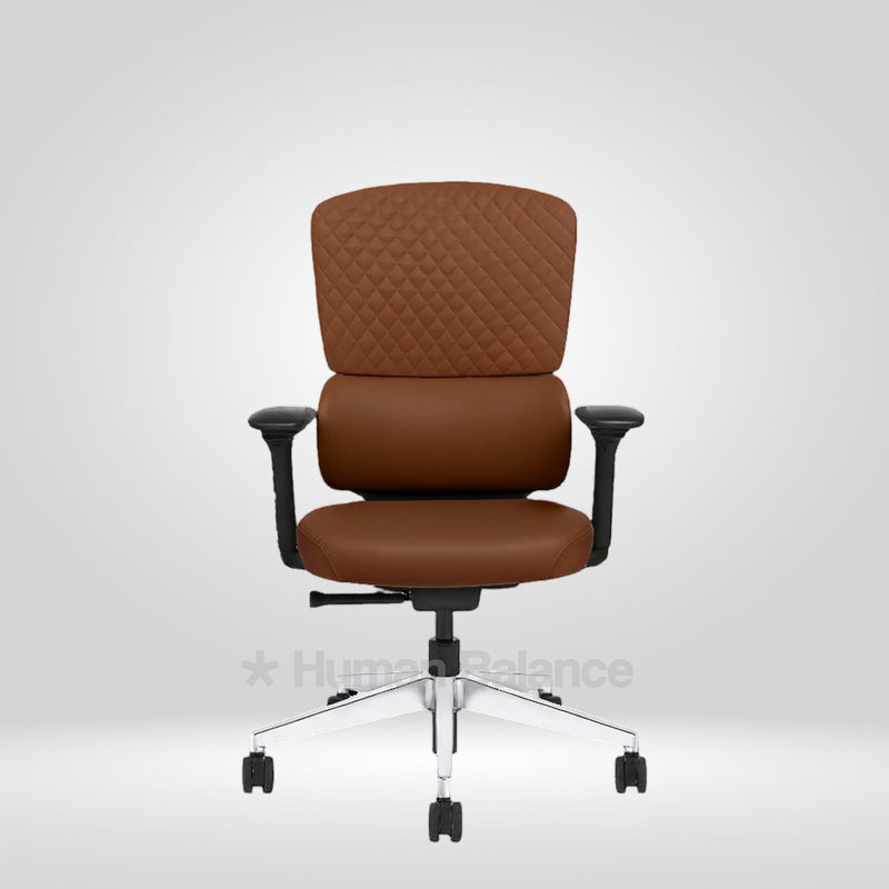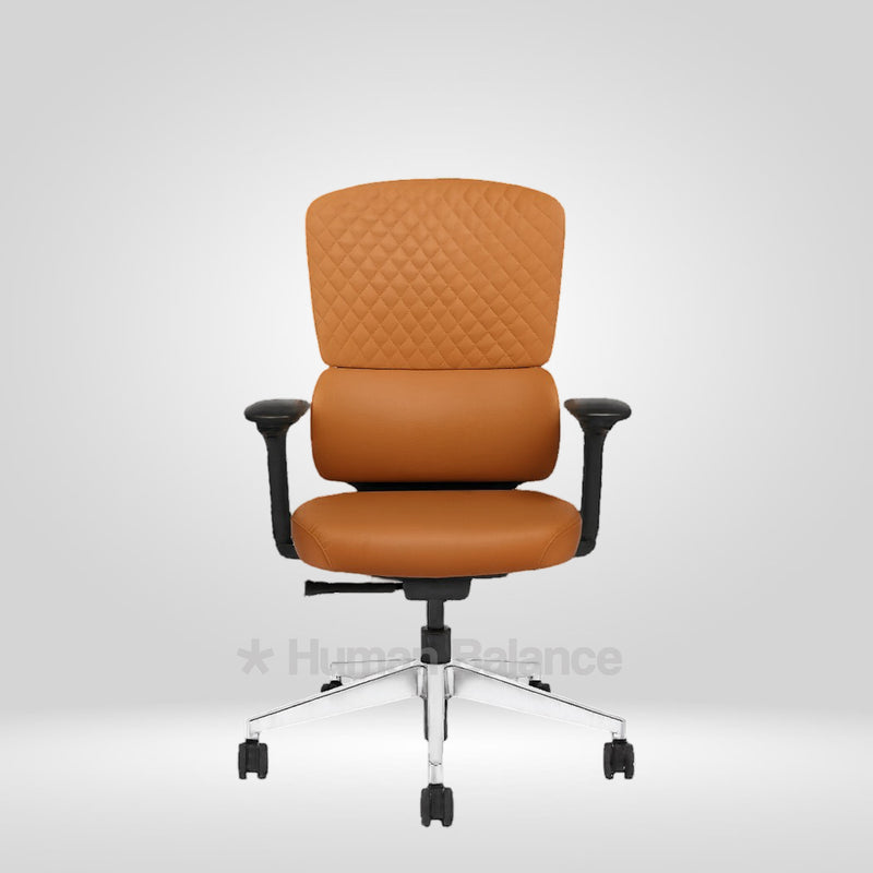 The Merastra midback office chair draws design influences from the contemporary italian task chair design. The diamond pattern with clean and flowing outlines gives the chair a refined and modern visual identity. At the centre of its performance is an adaptive lumbar support system that intuitively adjusts to posture movements. This chair embodies sleek professional design with advanced ergonomics making it well suited to tech forward and futuristic interiors.