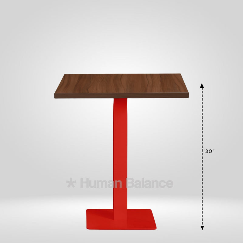The Mirnoq red cafe table embodies a modern look thats clean and minimalistic embellishing the shape of the profile. The bold red pedestal adds a hint of artistic flair to the neat lines of the tabletop. The quadrate pedestal flows smoothly into a rectilinear pillar that holds the tabletop in place. The red hue imbues a lively upbeat feel that complements lavish high end or retro inspired decor making it a sophisticated focal point.