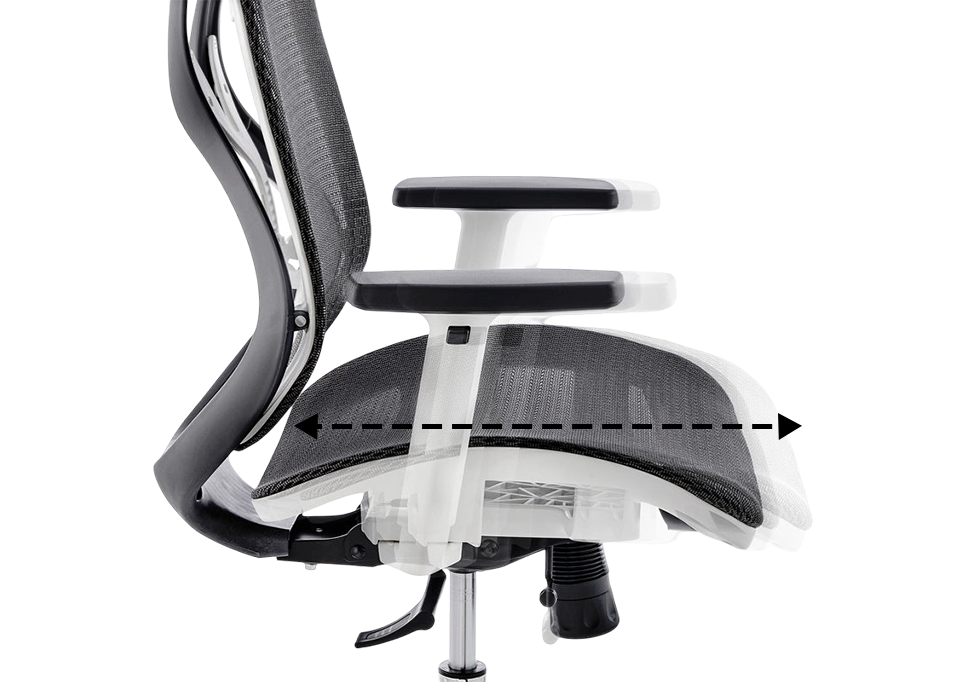 Allows forward and backward adjustment of the seat pan. Supports users with varying leg lengths and thigh depths promoting optimal knee to seat positioning.
