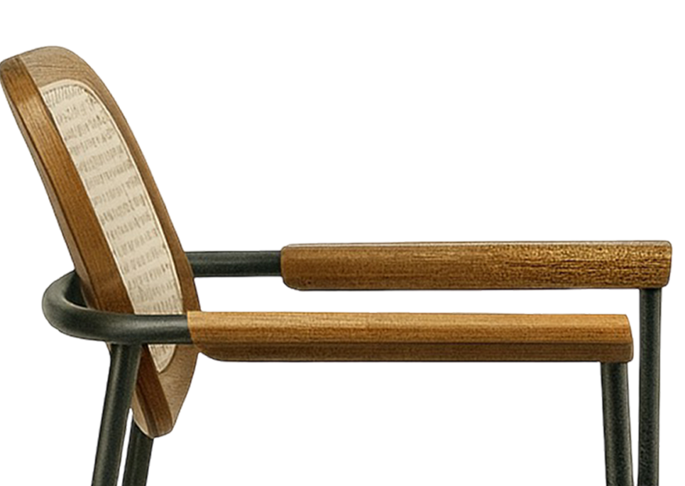 The Nomos cafe chair is the proof that organic design doesn't have to be plain and monotonous but it can also be gracefully stylish. It's cane woven back is paired with wooden accents and neat lines for a sleek artisan look. The chair is not only airy in its profile, but also provides adequate comfort. This makes it ideal for chic interiors.