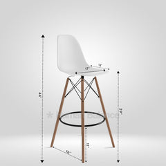 Pull up a seat where classic design meets a playful spirit with this Eiffel style Nord barstool. This barstool boasts the classic Eiffel style base reminiscent of the crisscrossing steel beams of the Eiffel Tower. The molded fibre seat has a smooth modern profile that adds sophistication to any modern room. Its wooden legs and dowel footrest perfectly balance the minimalist industrial feel. The black metal cross exudes both aesthetic appeal and outstanding structural integrity. Overall this design blends midcentury modern charm with practical everyday use for stylish comfortable seating. The barstool's hardy yet smooth molded fiber seat offers an ergonomic structure cradling the user with subtle support offering both comfort and style in a variant of available colours. It offers effortless repositioning providing optimum functionality whether used indoor or outdoor. Since its armless it also provides infinite mobility. It is not easily susceptible to wear and tear but is very easy to clean hence its long lasting quality ensures you won’t have to worry about frequent replacements making it a worthwhile investment. Perfect for trendy bars, lively clubs and pubs.