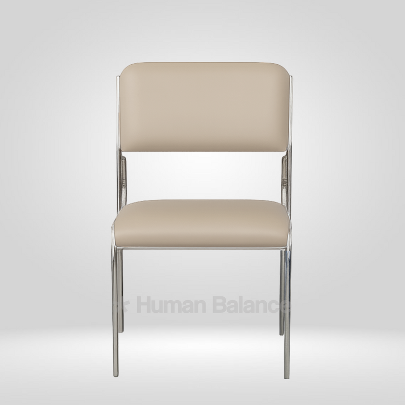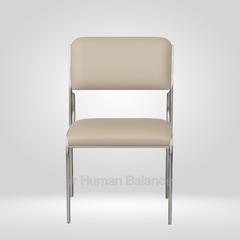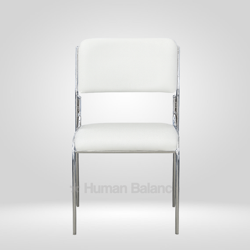The slim profile appears visually light while maintaining a clear structural definition allowing the chair to look light and composed without compromising frame integrity or proportional stability.