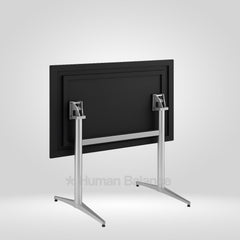 The folding mechanism allows the tabletop to tilt vertically for quick storage ensuring secure locking when in use and effortless release when folding.