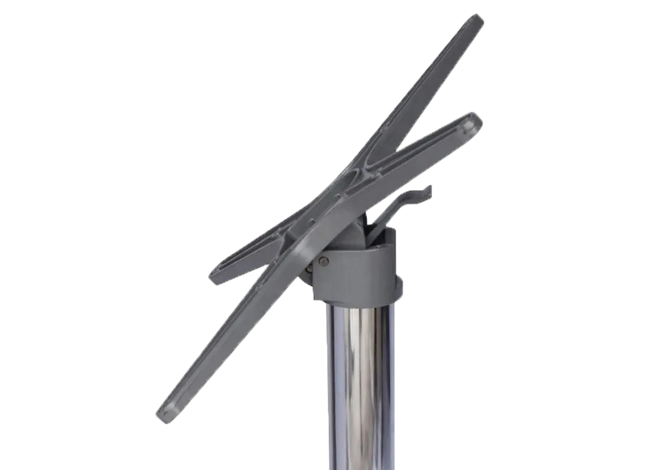 The folding mechanism allows the tabletop to tilt vertically for quick storage ensuring secure locking when in use and effortless release when folding.