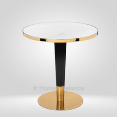 The Remnin cafe table embodies a design that originates from the desire to create a table that feels architectural and minimal at the same time. It's design identity is defined by tapered proportions and clean transitions. Here, every element is shaped to contribute to a strong unified silhouette. A dynamic vertical presence is created by the narrowing pedestal and reflective base that gives the table a poised stance. Such a design makes the table well suited to modern transitional style interior decor.
