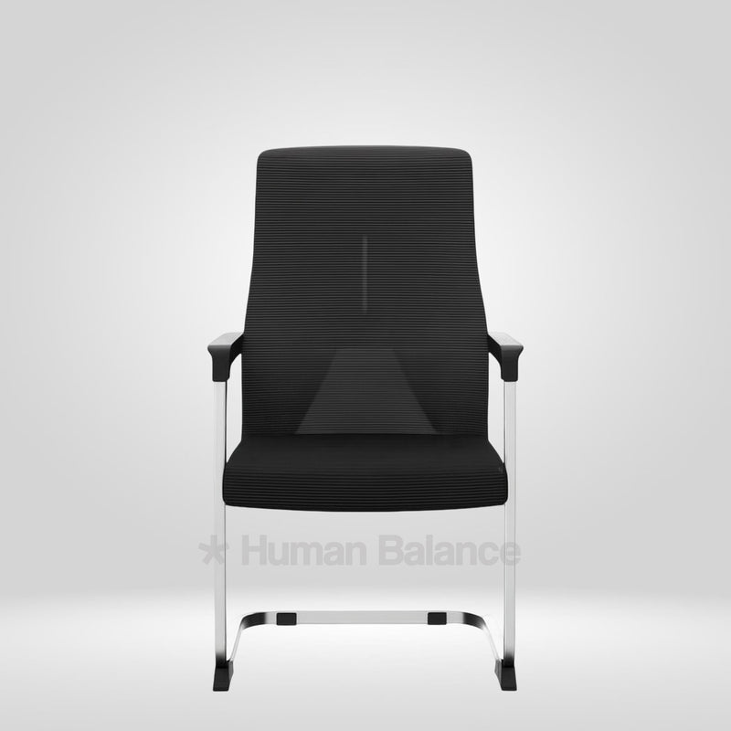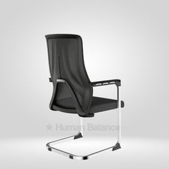 The Rorsh office visitor chair draws its design influence from the late 20th century european office seating. Here, slim vertical planes and fluid metal loops create an appealing cohesive visual language. The backrest depicts a confident architectural profile imbuing a sharp professional presence. The best characteristic of this chair is its cantilever base which is rooted in modernist functionalism. It creates a naturally flexible seating motion that reduces impact on the spine allowing a smoother and more responsive sit. This design goes well with contemporary office and commercial interiors.