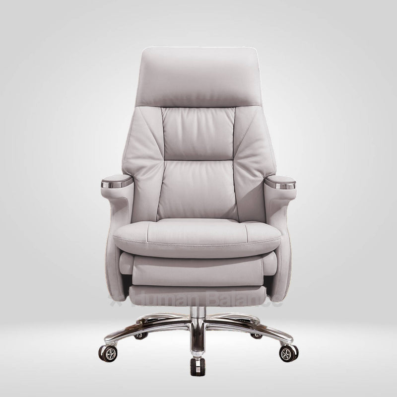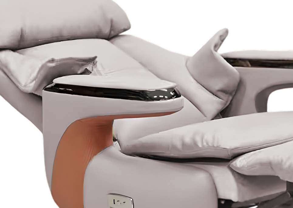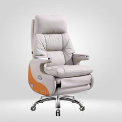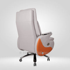 The Skypremier office recliner chair consists of a design principle inspired by contemporary Japanese style automotive recliners. The large comfortable and voluminous profile allows the user to nest comfortably for a premium lounge like experience. It consist of innovative technology with special features like a hidden extendable footrest that seamlessly slides out when activated keeping the overall profile visually clean. The electric reclining system moves through four angles i.e. from an upright 90 degree position to a deep 160 degree position integrated with AI voice activation to initiate gentle massage for absolute relaxation. It possesses a single click lie down mode, rechargeable battery operation and convenient charging options, perfect for one that desires both ultimate comfort and style in their private workspace.