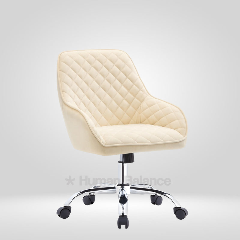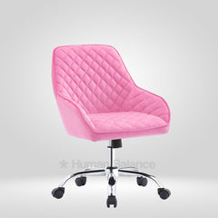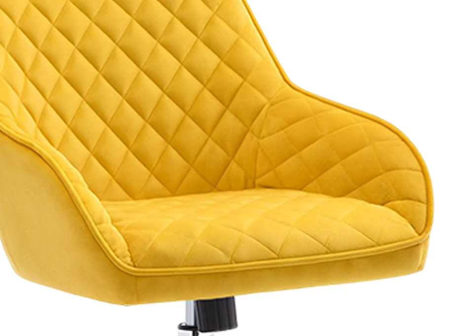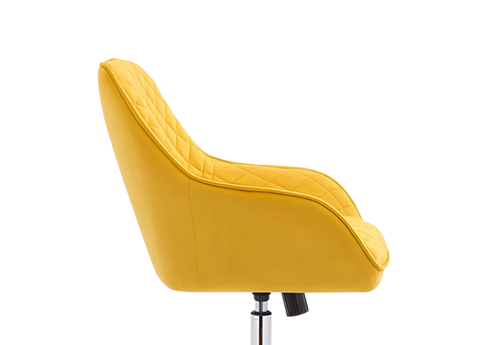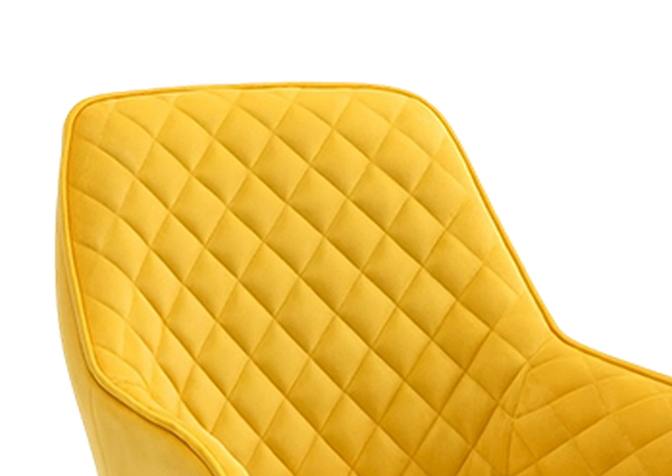 The diamond quilt pattern of the Terra chair establishes a bold design presence. Its enveloping bucket form smoothly flows into the arms embodying a fluid sculptural appeal. It is best for spaces needing dynamic seating solutions thanks to its swivel and height adjustability.