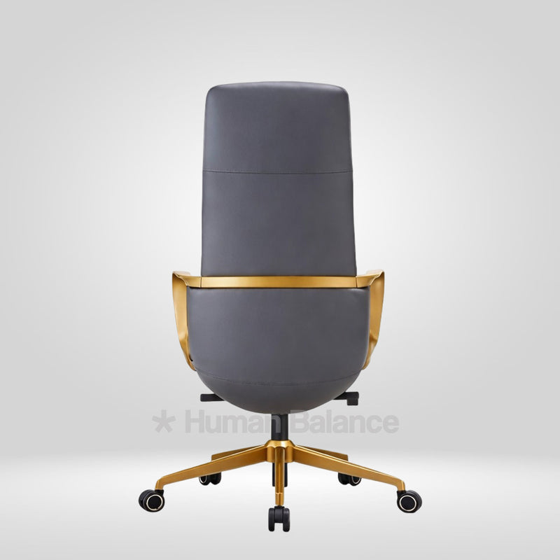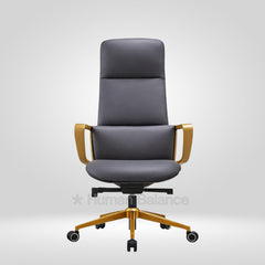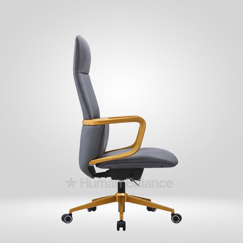 The Titanor highback possesses a strong and confident stance. It supports the upper and middle back and provides firm and steady comfort. The smooth grey finish of the upholstery complements the gold frame which imbues a hint of distinguished professionalism to the overall design. Such an exquisite design gives the sitter a feel of power and authority which makes it go really well with urban industrial style interior decor.