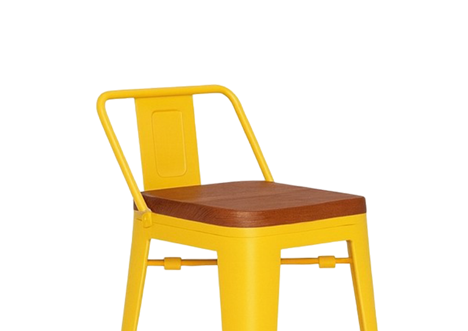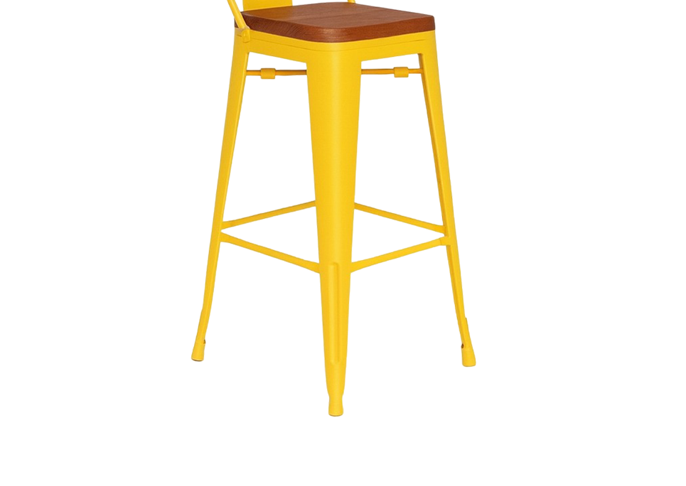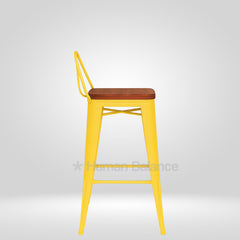 Tolix Replica Bar Stool with Wooden Seat Yellow