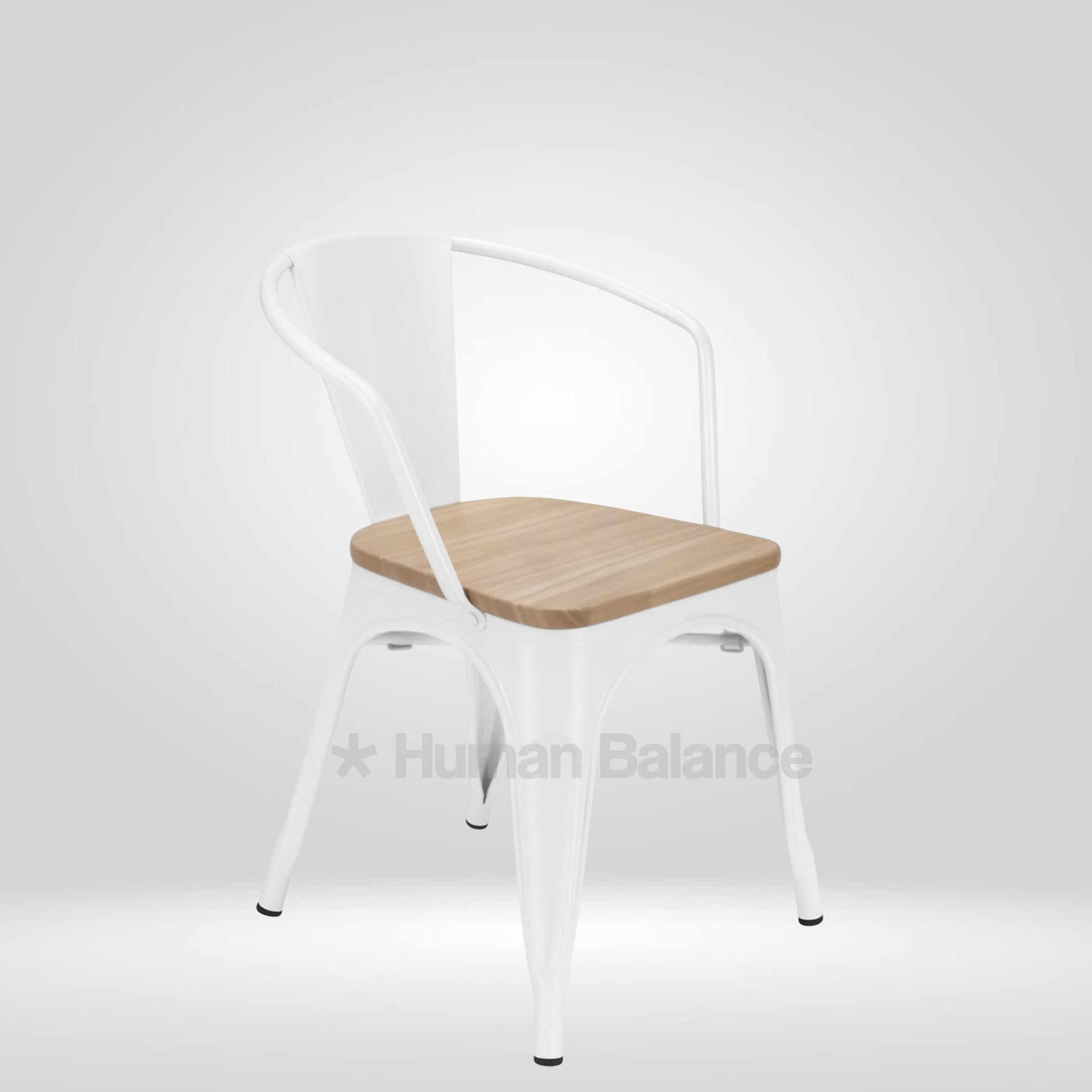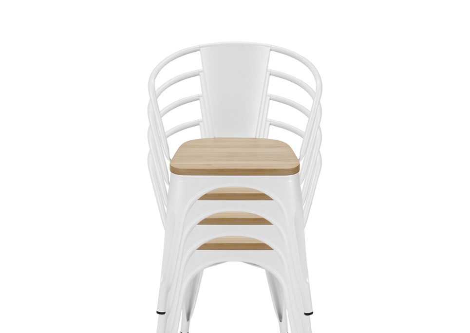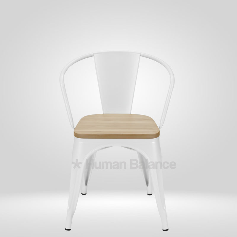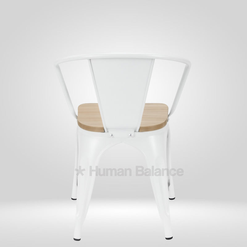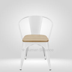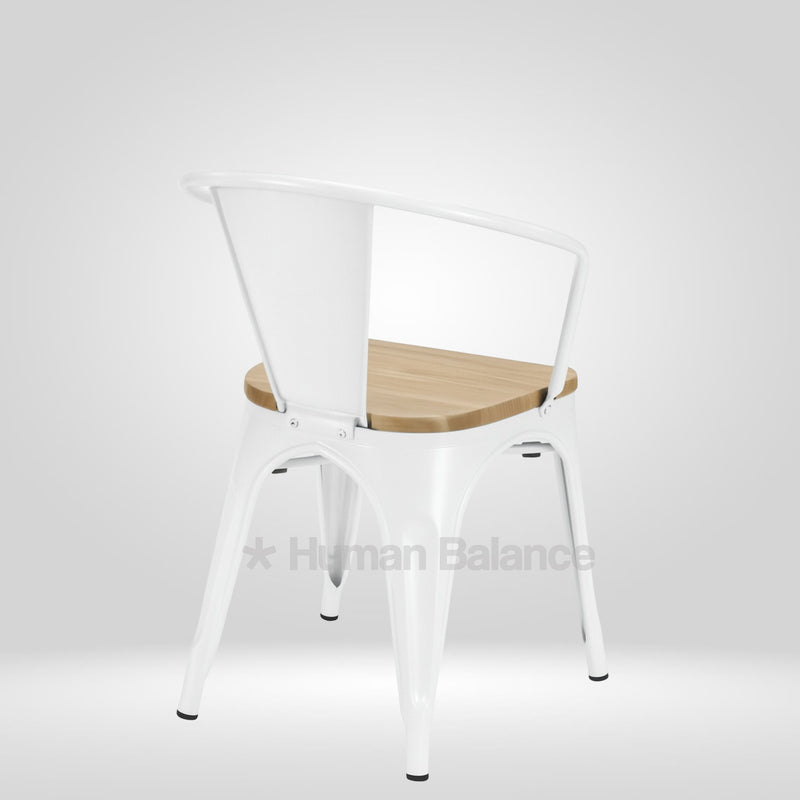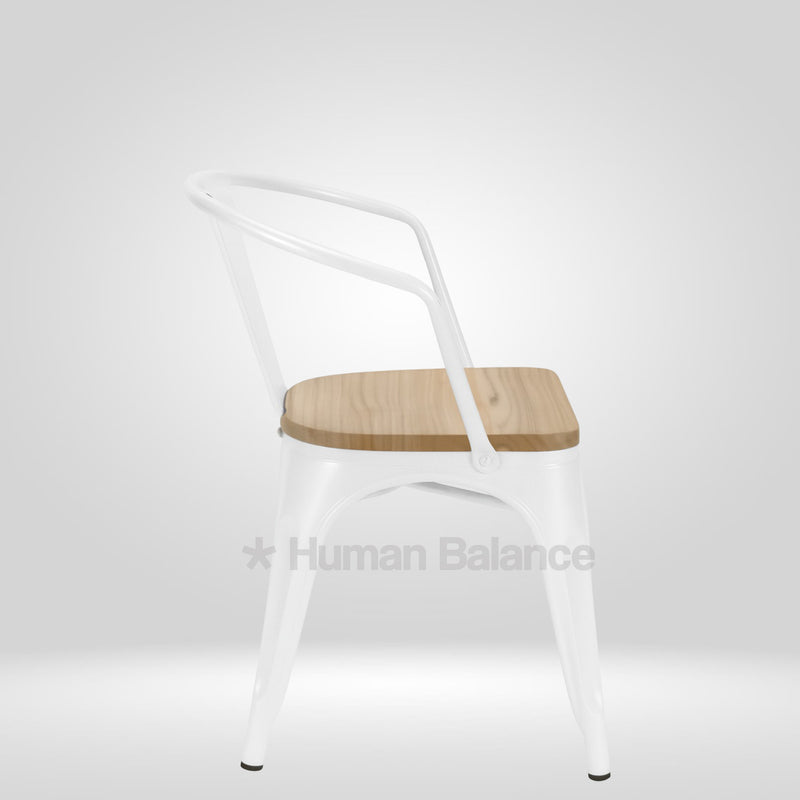 Tolix Replica With Arms Wooden Seat White ( Pack Of 2 )