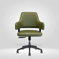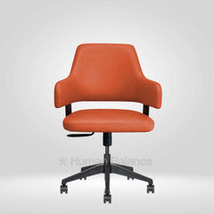 The backrest gently curves around the sides forming a wraparound structure that supports the back and arms comfortably creating a compact and inviting seating profile.