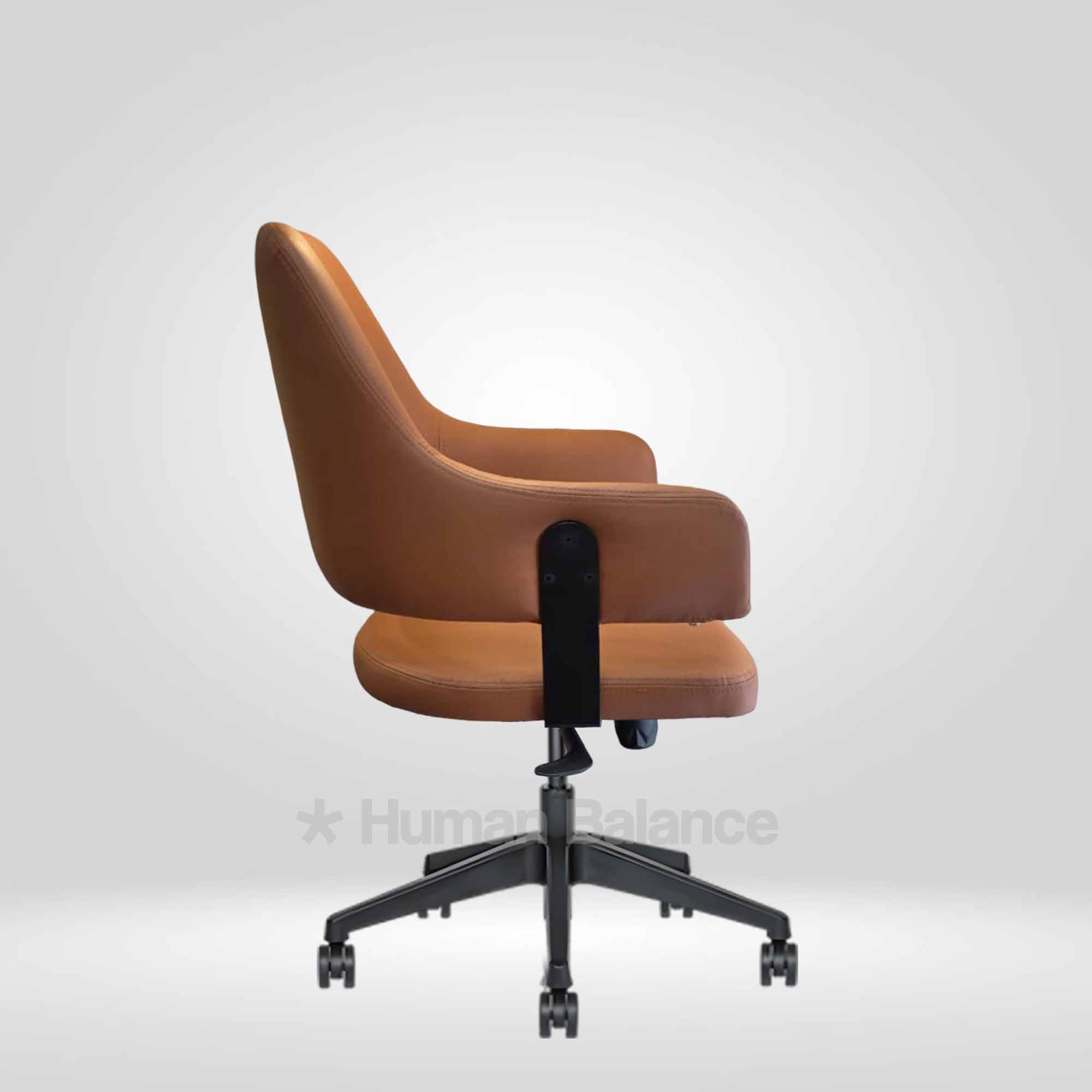 The backrest is anchored with a robust mounting plate that strengthens the chair’s structure while maintaining a neat design.
