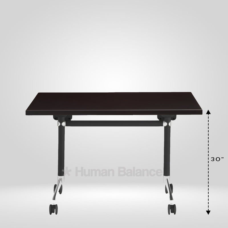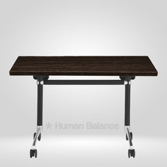 The folding mechanism allows the tabletop to tilt vertically for quick storage ensuring secure locking when in use and effortless release when folding.