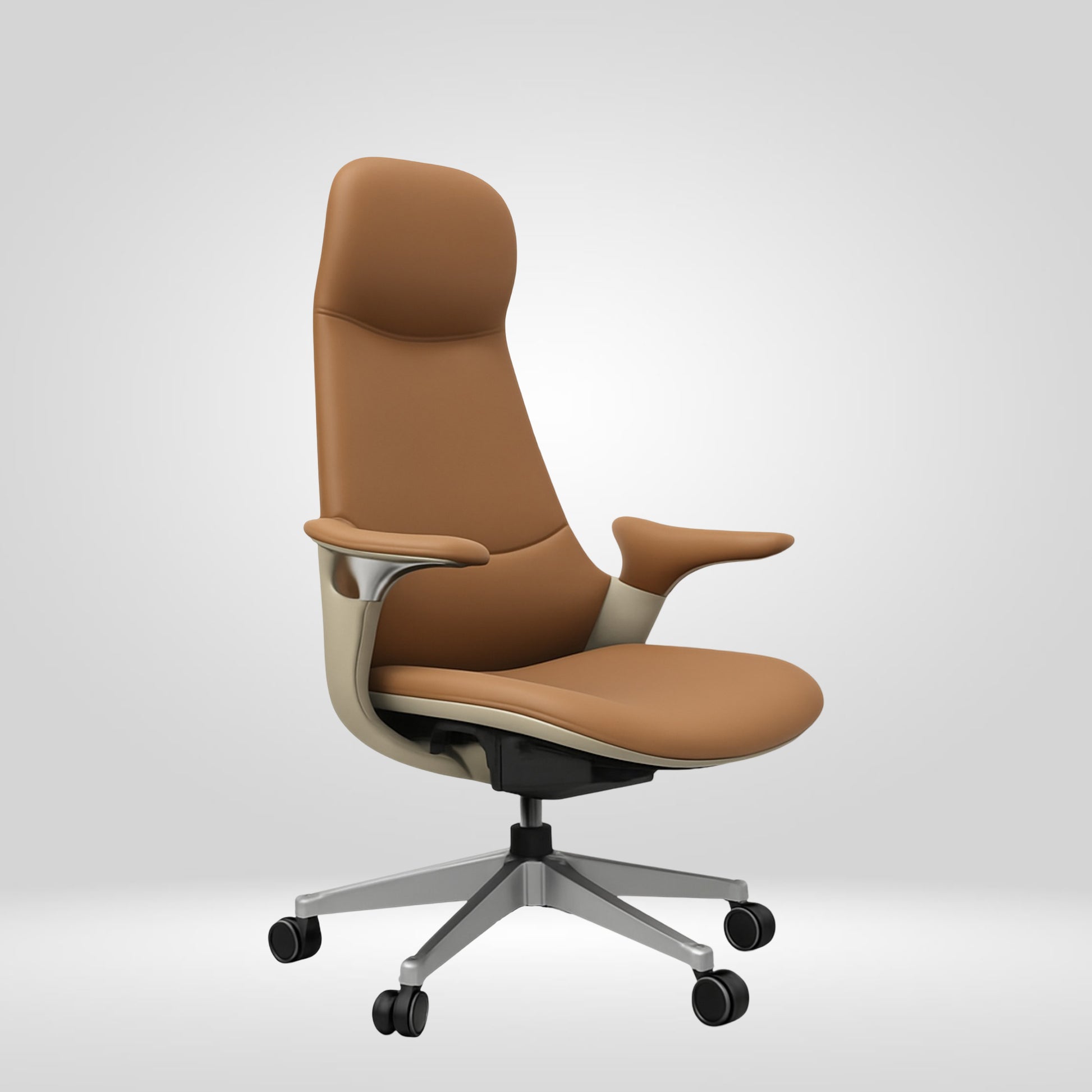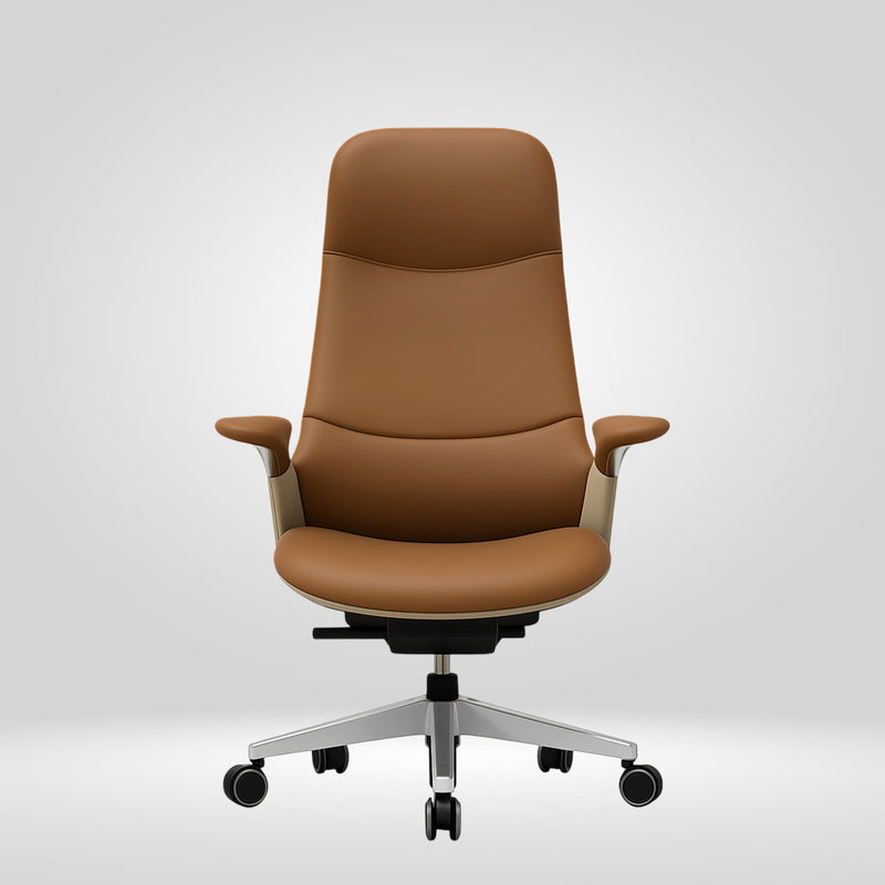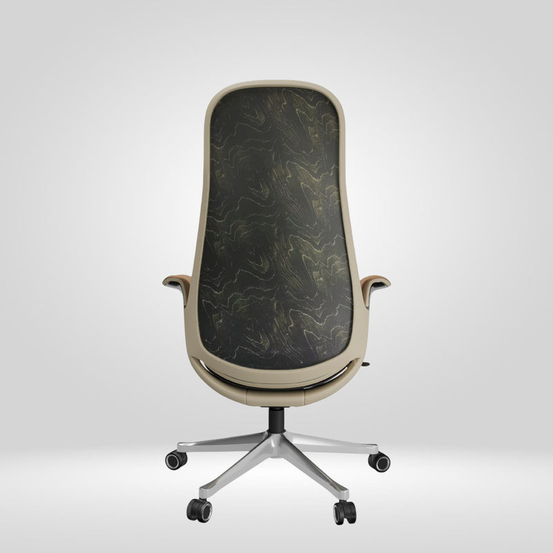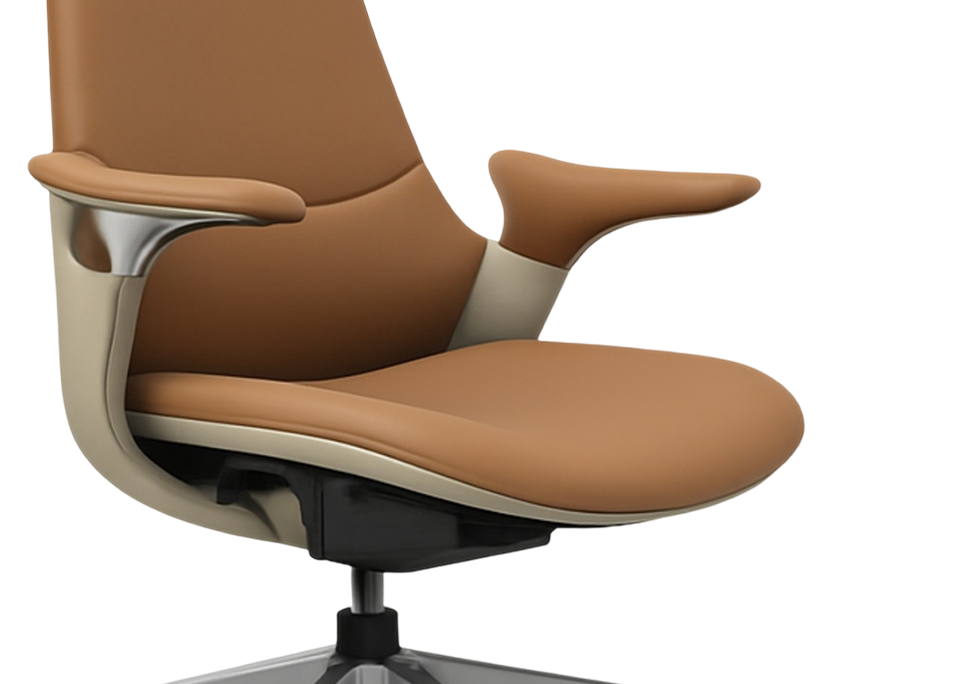 The Wisconsin highback chair's design draws cues from professional scandinavian office seating style. The almost monolithic profile is defined by fluid transitions embodied by a smooth arc that flows into the seat. It does not consist of heavy segmentation but rather a minimalistic elegant profile with clean lines and a cohesive stance. The armrests flare outwards shaped in such a way that makes them look like a natural part of the main shell. This makes it perfect piece for contemporary minimalist settings.