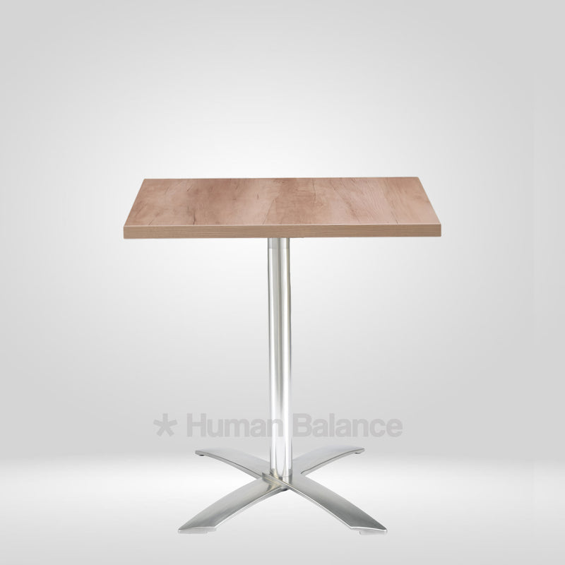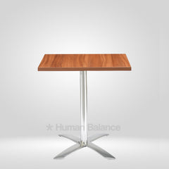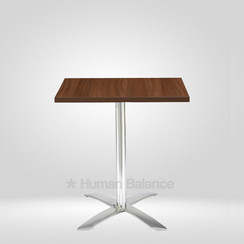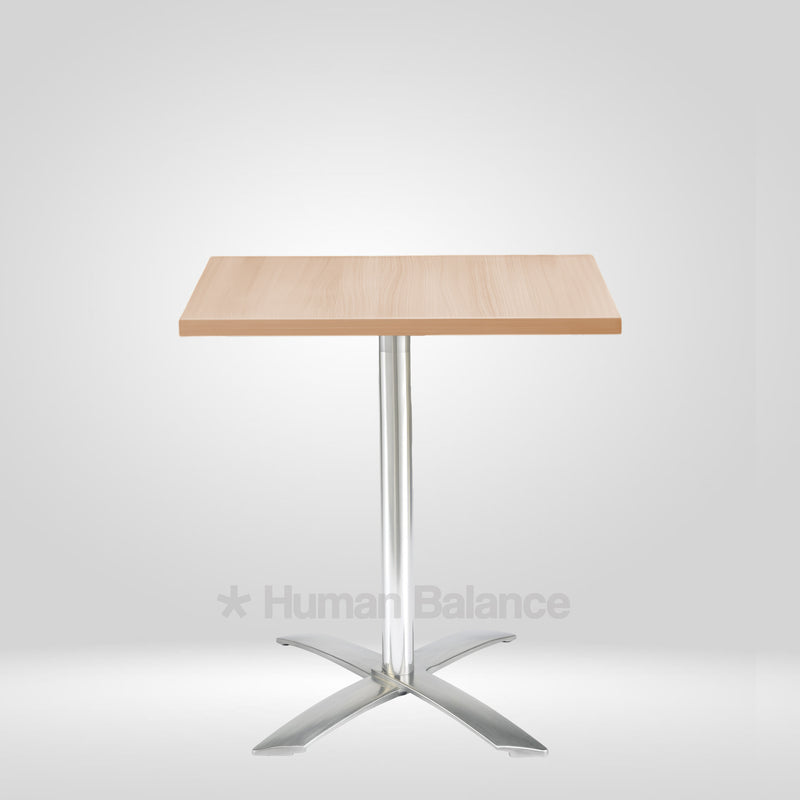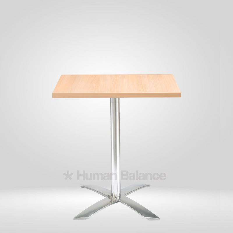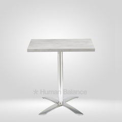 The Wolve Square folding cafe table celebrates architectural purity with a sleek square top hoisted on a single pillar that blooms into four sculpted star prongs. Each prong flares with aerodynamic precision portraying mordern design. Its an excellent and durable space efficient solution for compact spaces thanks to its foldability, keeping the silhouette delightfully light and contemporary.